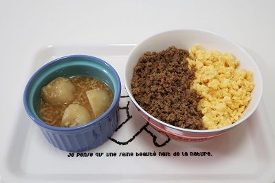 じゃがいもの鶏そぼろあんかけ・2色丼