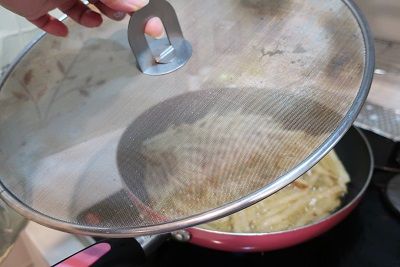IKEAで購入した油跳ねガード使っています。