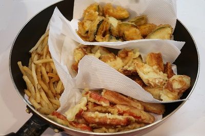 ポテトを揚げた後に天ぷらも作りました。