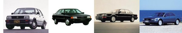 左から、VWジェッタ、アウディ100ターボ、アウディV8、 アウディA8。 今まで…