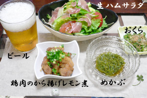 昨日はいわしの梅肉しそ挟み揚げでもしようかとスーパーへ→…なかった。。。仕方なく、鶏肉でも買ってみた。から揚げでもしようかなぁ??芸ないよなぁ~~~(><)あんまり凝ったもん作りたないしなぁ~~~ってな訳で、揚げてから一手間だけ付け加えた一品♪(2人分)・鶏もも肉(1枚) 鶏もも肉の下味(醤油大さじ1・塩小さじ1/2・うま味調味料少々・こしょう少々・片栗粉大さじ2)味付け調味料(中華スープ3/4・酒大さじ1・砂糖大さじ1/2・醤油大さじ1・うま味調味料少々・こしょう少々・レモン汁…半個分・しょうが…チューブ3cm)1.鶏肉を一口大に切って下味に漬け込む2.焼き揚げする。(いつもながらのケチケチ方法)3.味付け調味料を混ぜておく4.3と2を入れて水気がなくなるまで煮込む。出来上がり♪旦那評価…お試しあれ♪