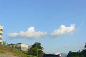 私は空を見上げるのが好き♪高校生時代、運動が苦手な私は長距離走が一番嫌やった…それが、空を見上げて雲を見てたら、最後まで走れてた。不思議やわぁ~。。。夏の空はくっきりした雲が出るから、何だかとっても癒される(~0~)この前、感動的な雲に遭遇!飛行機の形に似た飛行機雲?ちょっとうれしくて、パシャ♪小さな幸せを見つけた一瞬やったなぁ~♪♪♪