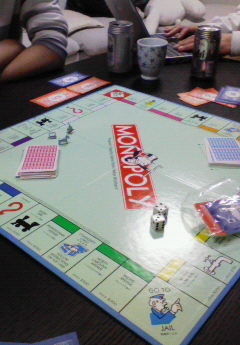 結婚前に購入してたモノポリー。海外のお子様たちがやってるらしいこの遊び。人生ゲームのような感じ。旦那様のお友達3人が遊びに来たときに、ここぞとばかりにこれを出し、やってみたはいいけど、これがまた難し~~~(><)物件を売り買いしないとアカンのに、みんな物件を手放さへんし…ケンカの一歩手前でした。(笑)人生ゲームの方を買えばよかったかなぁ?