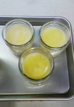 この間のお休みに突然プリンを作りたくなり、本を漁って作ってみました(~0~)うんうん♪うまいこと出来た!!さっ♪冷ましてる間にお風呂にでも入ろ~っと♪♪♪何か、シューーーーーーーって音が聞こえて来て、『何の音やろなぁ~?』って思いながら…『あ~ええお湯やったわ★』え?何やってんの???(やってるのはイタズラ好きの旦那様)プリンの上に砂糖を敷き、バーナーで焦げ目を付けて…ブリュレになってるやん!!!!しかも、ちょっと苦いやん!!!!