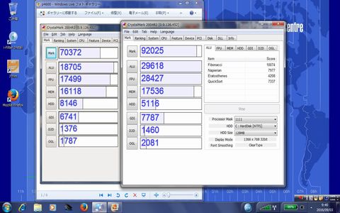 ※CPU換装のベンチ結果比較(左:P4600、右:Core i3/370M)