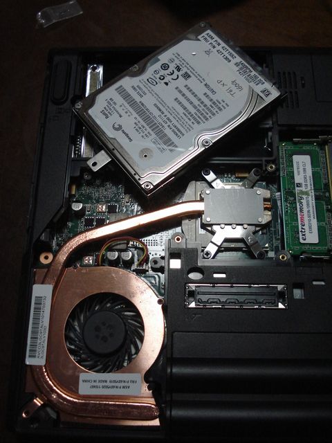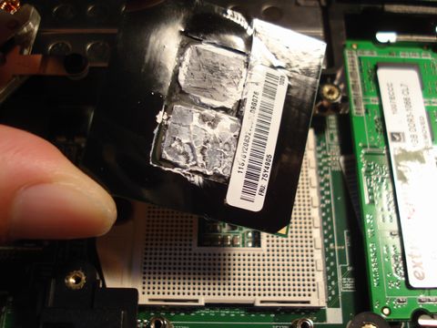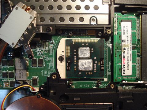 L412のCPUには、底面からアクセスすることができる。サーマルカバーと呼ばれるカバーを外すと、HDDやメモリ、CPUにアクセスすることがで き、換装や増設が簡単にできる。(これはそれまでのThinkPadと比べるとすごく簡単だ。例えば、T400の場合では、CPUにアクセスするために は、(1)パームレスト、(2)キーボード、(3)キーボードベゼル、(4)ファンアセンブリー、(5)CPUファンと外さなければならない。)