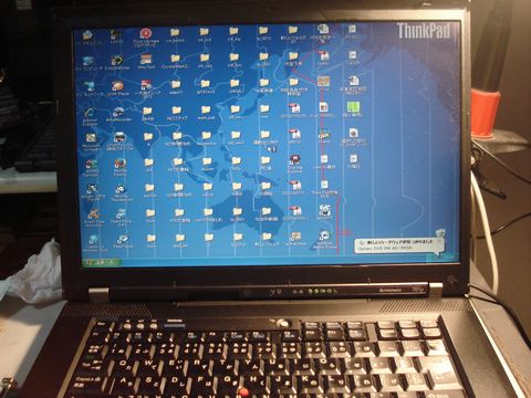 ※HDD換装直後のT61p。ディスクトップアイコンが画面を覆います…。