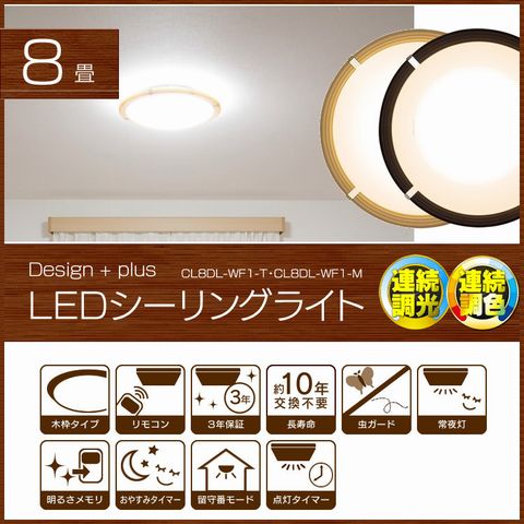 CL8DL-WF1-T アイリスオーヤマ LEDシーリングライト 8畳 調色 木枠 3800lm ブラウン