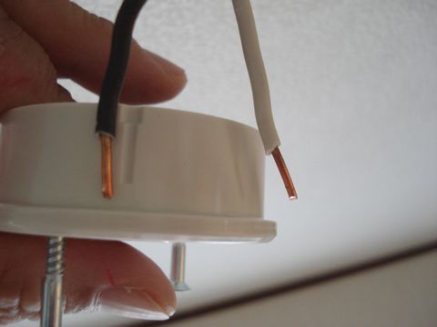 ※ランプのグローブを外したところ。電源線が直接速結端子に接続されている。