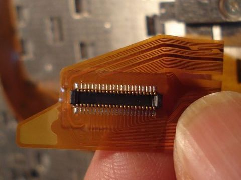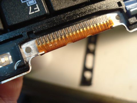最後は、キーボード基板とフレキシブルケーブルとの接点部分。何か、こぼれたような痕があることから、ここが根本的な原因かもしれないぞ…。