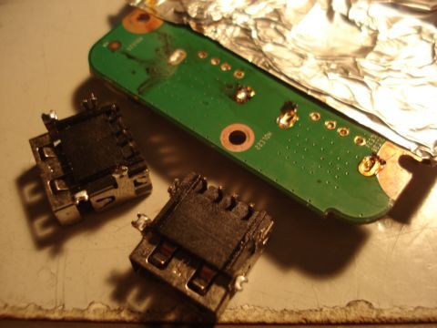 ※たっぷりとフラックスを塗って、ヒートガンで炙って半田を溶かしてUSBポートを外す。