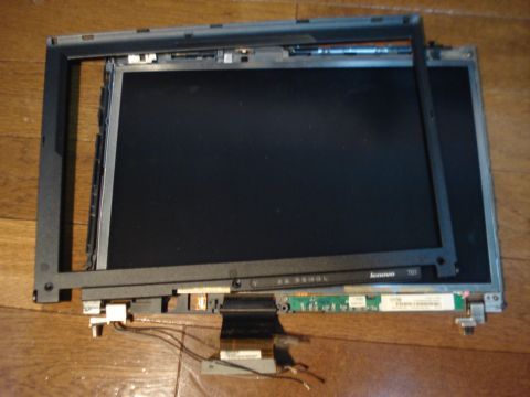 とりあえず、T61を分解して別の液晶ユニットで確認してみると、しっかり表示されたので、この障害の原因は上半身にあることが予想できる。
