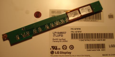 試して分かったのは、LEDコントロールカードには、14inch用と15inch用の2種類があり、15inch用のカードの方が幅が広く、コネクタ位置が微妙に異なるので、今回の換装には、15inch用のLEDコントロールカード(42W8082)が必要ということだ。(使えないことはないのだが…。)