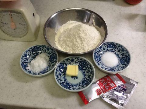 取り扱い説明書によると、パン一斤をつくるには次の材料が必要だった。