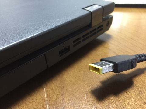 X1 Carbon の発売から、ThinkPadのACアダプタ(電源ケーブル)の差し込み口が、大きく変わりました。今までは、大きい丸形の差し込み口だったのが、長方形の差し込み口(スリム・チップ)に変更になりました。これにより、今まで長らく使われてきた丸形のACアダプタとの互換性が無くなり、現在発売中のThinkPadでは利用できなくなりました。