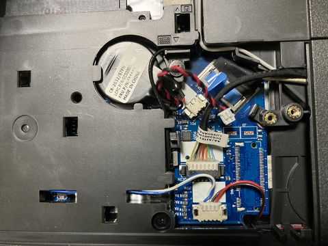 E550の場合、バックアップ電池は底面カバーを取り外したところにある。この端子を抜いてから、起動させればいいことになる。(バッテリーも取り外しておきます)