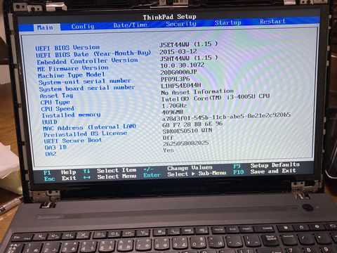 すると、日付・時刻エラーの後、BIOSに入ることができる。