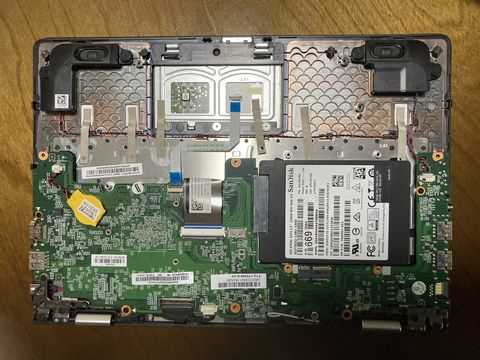 今回は、HDD、wlanカード、バッテリが取り外されていたが、手持ちの128GB-SSDを取り付けて動作させてみることにした。