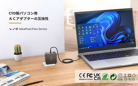 Yoga310は、電源アダプタのコネクタ形状が、よく使われている通常のものより小さい。サイズは外径4mm内径1.7mmで、手持ちの電源アダプタがなかったので、変換コネクタを使用して動作確認した。