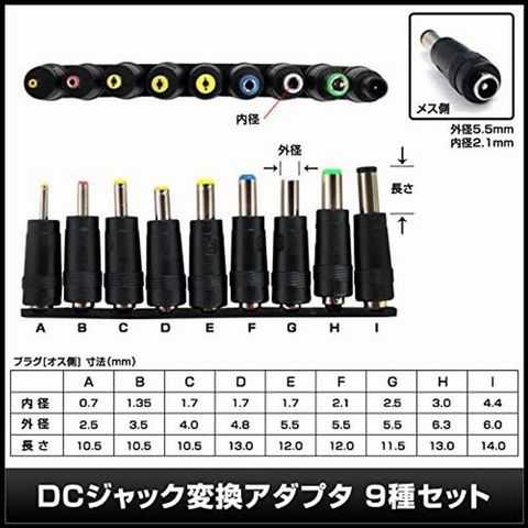 ※変換コネクタ(DCジャック変換アダプタ)の種類。「C」を使用。