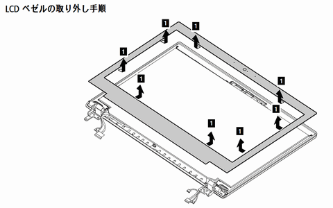 ※液晶ベゼルの取り外し手順(「X250保守マニュアル」より)
