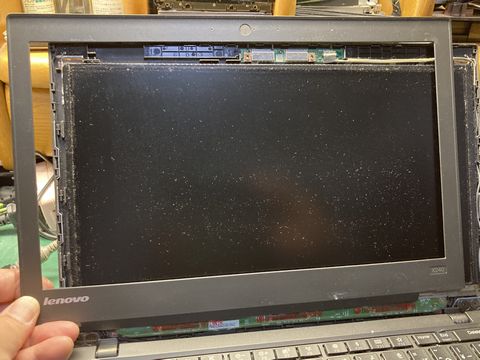 これまでの経験から、X240からX270まで、流用可能なパーツがたくさんあることが分かっている。液晶ベゼルもきっと流用可能ということで、先日手に入れたジャンクなX240から液晶ベゼルを調達することにした。(液晶ベゼルの取り外し方は「保守マニュアル」を参照した)