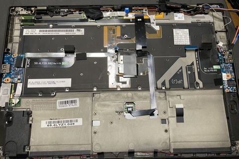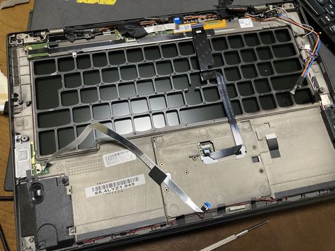 ※やっと現れたキーボードユニット。取り外すには、何十ものネジを外す必要がある。