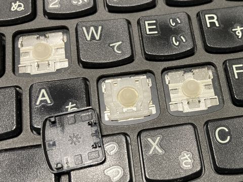 結果、パンタグラフとキートップを移植して動作を試してみたが、キーの感触が硬くピッタリとは言い難い状況だった。