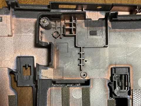 このバッテリロックのレバーは、代替えのパーツさえあれば比較的簡単に修理できる。