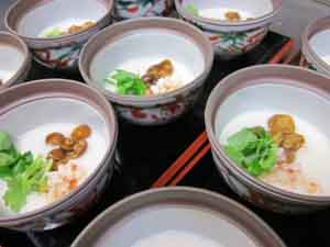 蒸してから、とろり~とお醤油味のお出しのきいたあんをかけます。
