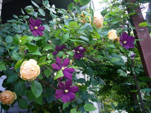 ジュードは遅咲きですので、クレマチスと上手くコラボしてくれます。