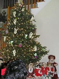 We bought a Christmas tree on Saturday and we put it up next day. John thought we could find a good size tree at our backyard.So I went into the wood (in the snow!!!) and looked for a perfect Christmas tree.He was wrong. We only have huge tall ones.Where does a baby tree grow?This year, we put up grapes for tree decorations.They are unique, aren't they? A good thing is that Duke doesn’t get too close to the tree.Duke is scared of the dolls. (Jenny, I think he is frightened of your doll in particular. hehe…) Duke ”Bang!!!” VideoDuke would limp after bang...Too bad I couldn't tape it... next time.Duke 「バ~ン」【動画】いつもならバ~ンの後で後ろ足を引きずって寄って来るのですがカメラを構えている所為か「死んだ」ままです。次回をお楽しみに・・・・週末,クリスマスツリーを買いました。11月終わりから ショッピングセンターの駐車場や道路脇の空き地でツリーやドアに飾るリース(wreath;花輪)が売りに出されています。屋根にツリーを乗せて走っている車が12月の初めに増えてきます。去年より値段が少々アップしたようです。ジョンの提案で(何故か私一人が雪の中を) 裏庭の林でクリスマスツリーを捜しましたが・・・背の高い大きい木ばかりで クリスマスツリーに適するのがないのですよ~。今年は 葡萄の飾りを中心にデコレーションしました。チョッと変わっていて 素敵でしょう?Dukeはツリーの下に置いた人形を怖がって傍に寄ろうとはしません。(後の大きな人形は頭と腕が電動で動くから、怖いみたいです。)Dukeにとっては 初めてのクリスマスです。