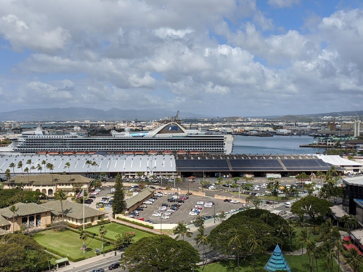 カリフォルニアとハワイ(時々メキシコに寄って)往復しているSTAR PRINCESSコロナウィルス陽性の乗客はいないようですね。貿易風雨でお天気雨が多かった一日。キアヌは雨の中の散歩を拒否。昨日、ドッグパークでドロドロになってシャンプーしたばかりだからね。汚れて又シャンプーされるのは厭だったかな?↓昨日のドッグパーク元々貧弱だった芝生が剥げて、雨が降るとドロドロ。水溜まりも出来てなかなか乾かない。それでも犬達が喜ぶから、飼い主さんが犬を連れてやって来る。夕方6時ごろがピークで、20頭ほど集まるのよね。皆さん、「ハワイで(もしかすると全米で)一番小さいドッグパークで、しかも犬のサイズも大小混ぜこぜなだ」と文句を言っているけど、キアヌには丁度良い広さでサイズ関係なく挨拶したキアヌにはピッタリのドッグパーク。何より4~5分の徒歩圏内にあるのが有難いわ。屋内から外に出ようとしなかったわ。明日は貿易風が今日よりも強風になるらしい。傘を差すことが出来ないですね。私もレインコートを購入しないと…今週末まで貿易雨+強風の日が続くとの天気予報早く、青空のハワイになれば良いですね。