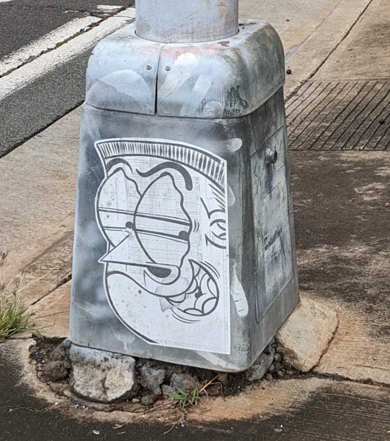 「落書き」ステッカー微妙に顔が違う。そしてこちら↓はステッカーではなく描かれたもの。雨が降りそうだったけど、無事に一時間の散歩を終えての帰り道…🦊はビショビショに濡れている芝に入っていく。まだ帰りたくないのよね~。でも誰も🐶やってきませんよ~。コンドの前に来たら、芝で伏せて動かなくなってしまった。目線の先には車に乗り込む🐶がいたのよね。家に到着したら... この状態ストライキ? 酔っ払いみたい今日は曇天だったけど、ホノルルには雨が降らなかったわね⁈この一週間ほど、朝晩20℃をきっているのか、寒いのよ。爪先が冷たくなる。日中でも気温は23~4℃でハワイ住民には涼しくて ジョンは長パンツ+靴下を履いているのだけど、汗かきの私は日中は直ぐに汗をかく。でも朝晩は寒く感じるのよね~。年だから体温調整が上手にできないのでしょうね。若し、雪が降っているNYへ行くことになったら…10枚ぐらい重ね着でもダメ?12枚?十二単だわ~~大統領就任式で, ジャケットに厚手のミトン姿で一人座るサンダース上院議員の画像コラージュがSNSで盛り上がっています。↑が実際の写真バスを待っている👴... 全く違和感がないわ。流石にこれは... 👴には危険ね。これが最高傑作ランチの材料使用。ケール、ポテト、カリフラワー、ナス…アーティストのインスタグラムは こちら⇒Sandra Marshall Art