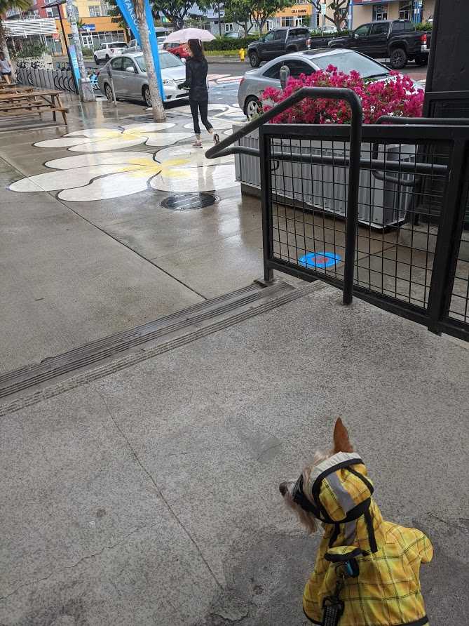 今朝も曇り空。ハワイは雨季ですものね。キアヌにレインコートを着せて、傘持って、散歩に出た途端、雨に降られた‼ソルトで雨宿り…クリスマス用💡と平時の💡取り換え中。もうホリディシーズンが終わりましたね。我が家も🎄を処分。今年のクリスマス、どうしましょう? 新しい🎄を購入?孫たちが来ているかな??🦊虹が出てきているよ。🦊携帯がボクに向けられているという事は📸だね携帯を向けられると何を言わずとも ポーズを取るキアヌです。🦊もうレインコート脱いでも良いんじゃないかな?🚙 🚙 🚙 🚙 🚙シェアリングカー・プログラムのHUI時間毎で借りれるので便利だし、駐車場(ピックアップ場所)が(我がコンドの前にもあるし)カカアコだけでも4~5カ所あるようです。(私にはレンタルとシェアリングの違いが分からないわ。)掃除係員が来ていました。掃除完了後のトランクにはまだ細かい砂が…、まぁまぁ綺麗なら👌なのね。👵「利用者と次の利用者の間に清掃するの?」👨「出来るだけ、掃除をするようにしている」(出来るだけ...という事は多分しないという事よね)👨「利用者から苦情が出たら必ず掃除をするよ」(当たり前だわ)👵「清掃料もレンタル料金に含まれているのよね?」👨「汚い時は清掃料は追加料金だよ」と言って 車内がドロドロになった写真を見せてくれた。ビーチやハイキングに行って汚れたのね。利用者や清掃員が携帯で撮った写真を 管理会社に送信するのだそうです。👨「清掃料は管理会社が利用者に請求するからボクは幾らか知らないけどね。」彼の掃除を見ていて思ったのだけど、やっぱりコロナ禍中は車のレンタルをしたくない。================================ 雨宿り中に4~5か月ぶりに会った🐶友と立ち話。彼女は3月から店内飲食をしていず、感染予防対策にも気を使っているのだけど、同居している彼氏の家族や友人たちが、何かと集まって食事をしているらしい。「5人以上の集まり禁止なんてロックダウン中も守っていなかったし、大晦日の夜も20数名で集まったのよ~」彼女は勿論不参加。でも彼氏は「参加しないとお母さんが文句言う」そのお母さん、「まだまだ、自分にワクチン接種の順番が回ってこない」と文句を言っているらしい。コロナ感染が怖いのか怖くないのか? 変な人が多いみたいですね。
