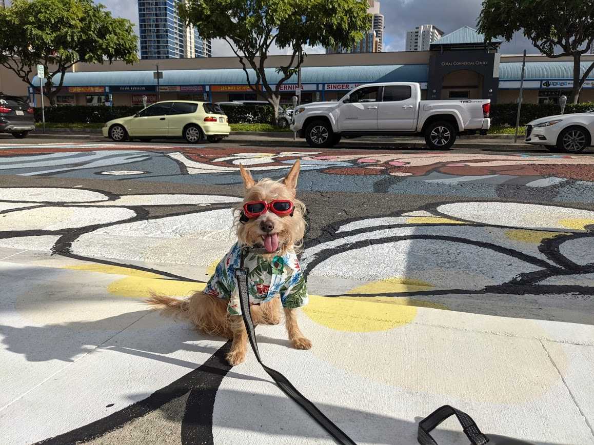 日本はもう2021年ですね。19時間遅れのハワイは2020年最後の朝TVジャパンで録画した「紅白」をバッググランドにこの日記を書いています。地上絵は昨日完成ひび割れだらけのアスファルトはペンキを吸い込んでしまって、二度塗りしなくてはいけなかったそうです。高い所も、通り過ぎる大型バスも怖くないキアヌでも今晩の合法違法花火大会の爆音は駄目✖ね。🦊花火や爆竹の爆音は「危険な音」なんだよ。ボクが追い払わないと…そうそう、この角度で撮れば、ボクも細く見えるでしょう⁈===========================「櫻坂46」てメンバーが46人もいるの?「乃木坂」も46 せめて人数が違えば区別が付きやすいのに。90年代に「イン・シンク」や「バックストリート・ボーイズ」のメンバーを覚えるのに苦労した👵には、46人ものメンバーを覚えるのは無理だわ。ジャニーズも人数が多い、グループが多い。顔を覚えれない私には「学校の先生」は不向きね。「スパイ」も無理だし…「お笑い芸人」はしんどそう「ドッグウォーカー」や「ドッグシッター」なら出来るわ。カカアコの相場は🐶30分散歩で$15 私も広告を貼りましょうか?