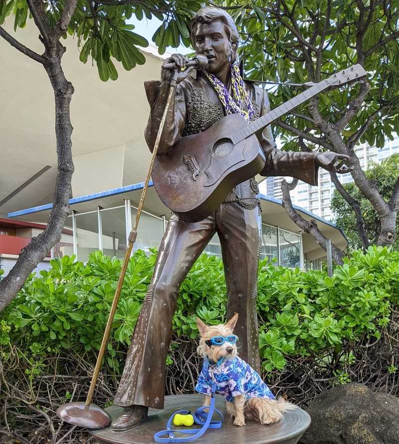 スッキリ快晴ではないけど、やっと明るい空になってきました。等身大のエルビスプレスリーの銅像「キング・オブ・ロックンロール」の若い頃ね。亡くなる前はかなり肥満体になっていましたよね。🦊お釈迦様の掌の上の孫悟空みたい何とも座り心地が悪いなぁ~「落書き」ステッカー、多分100枚以上あると思います。そしてこちらのステッカー最近歩道で見かけるマークですね。何だか👿に見えるのだけど… カルトじゃないですよね?さてハワイのコロナ感染者数は↑↓ほぼ横ばいそれでも韓国からの観光客を受け入れようとか、旅行前検査+手続きをオンラインで出来るようにして、ホノルル空港着後は(コロナ以前のように)簡単に空港を出れるようにするとか…色々話が出ていますね。コロナワクチン接種は12万回以上投与されていて、この調子で行けば夏までに皆が接種を終えるらしい。でも現実的には学校の先生たちにはまだ順番が回ってきていないし世論調査ではハワイ住民の半数は「予防接種を受けない」それに効果がいつまで続くのかも未だ分かっていないし...コロナ収束はまだまだ先ですね。「コロナと共に」生活様式で乗り越えるしかないわね。この女の子、何でも手の消毒器だと思っている