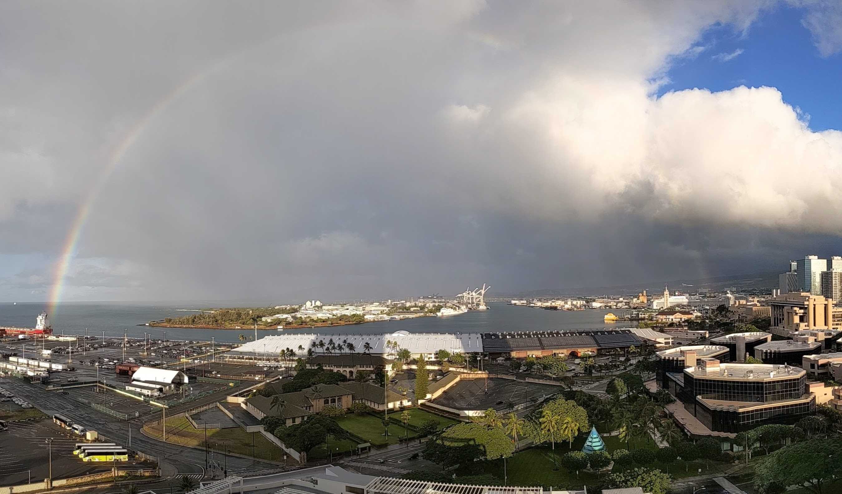 今年初めての土曜日ジョンも一緒にカカアコ地区内ワードまで散歩カカアコ・ファーマーズマーケットが開いていましたが私達はパス。ホールフーズも外に列が出来ていなかったけど、パス。ここ数日オアフ島のコロナ感染者数がまた増加中。出来るだけ、他人との距離を保ちたい。こんだけ高層コンドが立ち並んでいても、広場があるから開放感が有って好いのよね、そして虹今日も沢山🌈現れていました。==================================アメリカ本土ほどではないけどハワイも感謝祭に始まったホリディシーズン、新型コロナ感染者数が増加しています。陽性者のうち入院、死亡した患者累計数私が感染したら 入院する率23%、そして4%の死亡率感染しないのが一番だわ~。================================今朝、内科医から返信メールが来ていました。もう文通だわね。最後に「Akemashite omedetou gozaimasu!」このドクターは中国系だけど、ハワイで育っているから日本語に馴染みがあるのでしょうね。