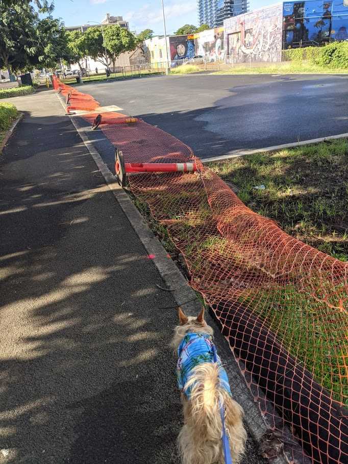 お天気好いし、地面も濡れていないけどピックルボールコートのペイント作業は行われませんね~。ドッグパークには15頭+を連れたドッグシッターのリサさんが来てました。💩を拾わないと問題視されているけど、何とまぁ、今日はマスクをしていなかった。これでは他の飼い主はドッグパークに入って来ないでしょうね。「おはようございます」と話しかけてきたけど(内科医もリサさんも、知っている日本語を使いたくて仕方がないのね~)キアヌがお友達と挨拶したら、「Have a nice day!」と言って👋外では安全とは言え、やはりマスク着用で距離を保たないとね。ハワイ共和党オフィスが『一時閉鎖』以前はトランプ氏の等身大パネルが飾られていたわね。今はブラインドが下りていて、中が見えないようになっています。メキシコ料理のフードトラックは此処が定位置。最近、メキシコ料理食べていませんね~それにしても、「コロナ・ストリート」のサインは、今は外した方が良さそう…沢山の植木鉢を乗せて賑やかだわ~~雲一つない青空…山側も今日は雲が少なかったです。===================================ホノルル警察が コロナ救済基金で ロボット犬(15万ドル)を購入することで審議が行われているけどコロナ収束後も警官が危険で入れない場所にも入れるロボットは有効だと思うのよね。汚職やら何やら問題が多い警察、もう仕事をロボットに交代させたら?