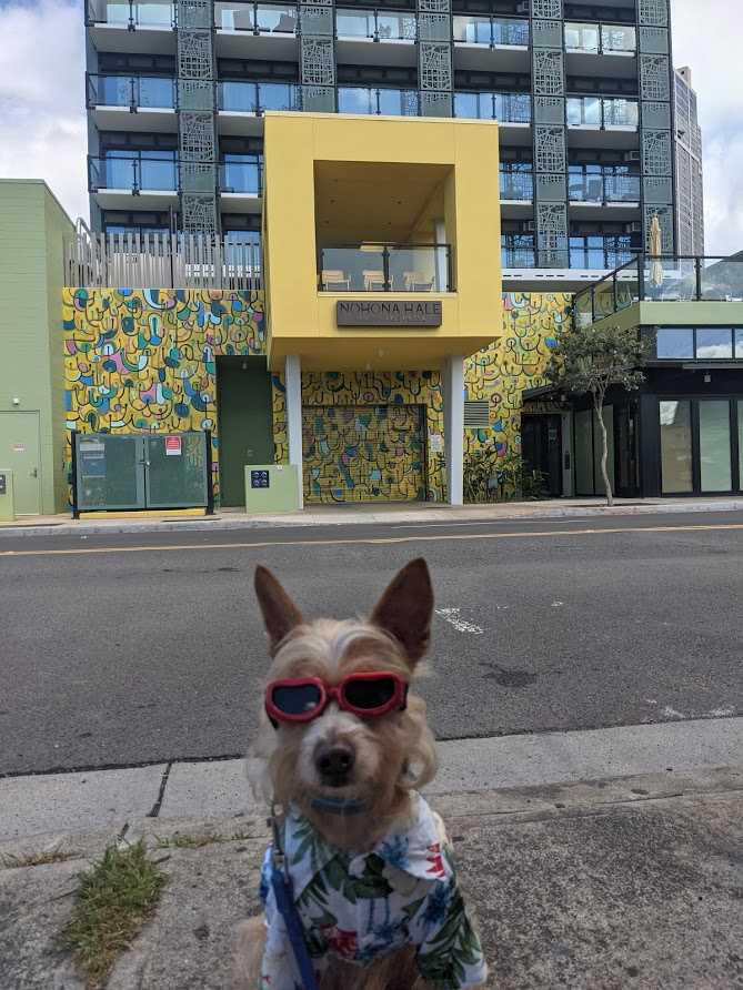 🦊 おれ様はハワイで一番クールなドッグ😎キアヌのドヤ顔...ハワイで一番かどうかは分からないですよ。⛅がちょっと心配だったけど、雨に降られずにラッキーでした。ココちゃんにも会えましたね。🦊ココちゃんママ‼ ココちゃんが🕶を外そうとしているよ自分だって機会が有ったらすぐに🕶を外すくせに、ココちゃんの事を言いつけている。ココちゃんに嫌われますよ。海に入る時はマスクを着用しなくてもよいから…多いのよね、マスクを着用していないで歩いている人が...肘マスク↓アラモアナビーチパークでマスクを着用していないで歩いている人は、地元民と観光客半々最近設置された防犯カメラ犯罪が多い公衆トイレの外に設置防犯カメラを取り付けただけで 犯罪が減るとは思えないわ。(チャイナタウンの防犯カメラは故障している物ばかりらしい。)毎月曜日にファーマーズマーケットが開催されていると聞いてマジックアイランド駐車場をチェック。🦊トラックが二台だけ、マーケットと言うよりスタンドだよね。客はローカルのシニアばかり...何が売られているのかをチェックしようと思ったら係員(?)がやってきて「ノー・ペット」柵が設置されているけど何処にもそんなサインないですよ~~~。🦊ボク、ペットじゃないよ。いや~、アナタはワイルドだけど ペットですよ。 次回は👴も一緒に来くれば、ひとりが🦊と柵の外で待って、もう一人が買い物できますね。でも、👴にはちょっと遠すぎる散歩かな?今朝はシェアバイク、沢山置いてありましたね~。シェアバイクbikiは, 地元の利用客が増加しても去年の収益が 前年度より4割以上減少。日本・韓国の観光客が当分戻ってこないことを受け、今週の木曜日から6カ所のステーションを廃止決定。本土からの観光客数が例年並みになっても、日本人観光客が戻ってこないとハワイは困るのね~。どうも、ハワイはこの夏からワクチンパスポートを導入するみたいです。事前のコロナ検査なしでも 自主隔離不要になれば日本からの観光客もハワイへ来やすくなりますね。