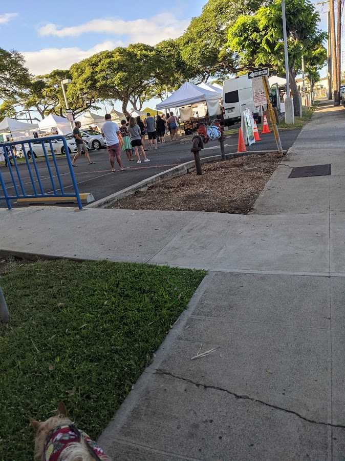 今朝のカカアコファーマーズマーケット今朝は出遅れて到着が公式オープン時間の8時既に人出が多かったから、👴はフィリピン人農家のテントへ👵🦊は大福屋さんへ8:03でこの行列待つこと25分以上でした。🐕ココちゃん😎も来ていました。ココちゃんは、未だ😎姿で歩けないとか…でもちゃんと🕶して大人しくドッグカーに座っています。それにしても本当に本土からの観光客が増えてきているわ~。日本人観光客が戻ってきたら、何処も彼処も もっと混雑するのね。今年のゴールデンウイークは 未だ日本人観光客は少ないでしょうが夏休みにはツアー客もやってきそうですね。全てワクチン接種次第かな?💉 💉 💉アメリカでJ&J製ワクチン不足の一因が学校へ戻る前に接種証明書が必要な学生たちが一回の接種で済むJ&J製ワクチンを希望しているからだそうです。更に私のように抗リウマチ薬(免疫抑制剤)を服用している場合J&Jせいワクチンの方がファイザーやモデルナより副反応問題が少ないらしい。ここ数日、J&J製ワクチンの副反応が問題になっているけど結局はJ&Jを選ぶ人が多いのかしらね~。未だ接種していないシアトルの末娘夫婦がJ&J製ワクチンを探しているけどシアトル付近のどの薬局にも在庫ゼロ。この状態いつまで続くのでしょうね。