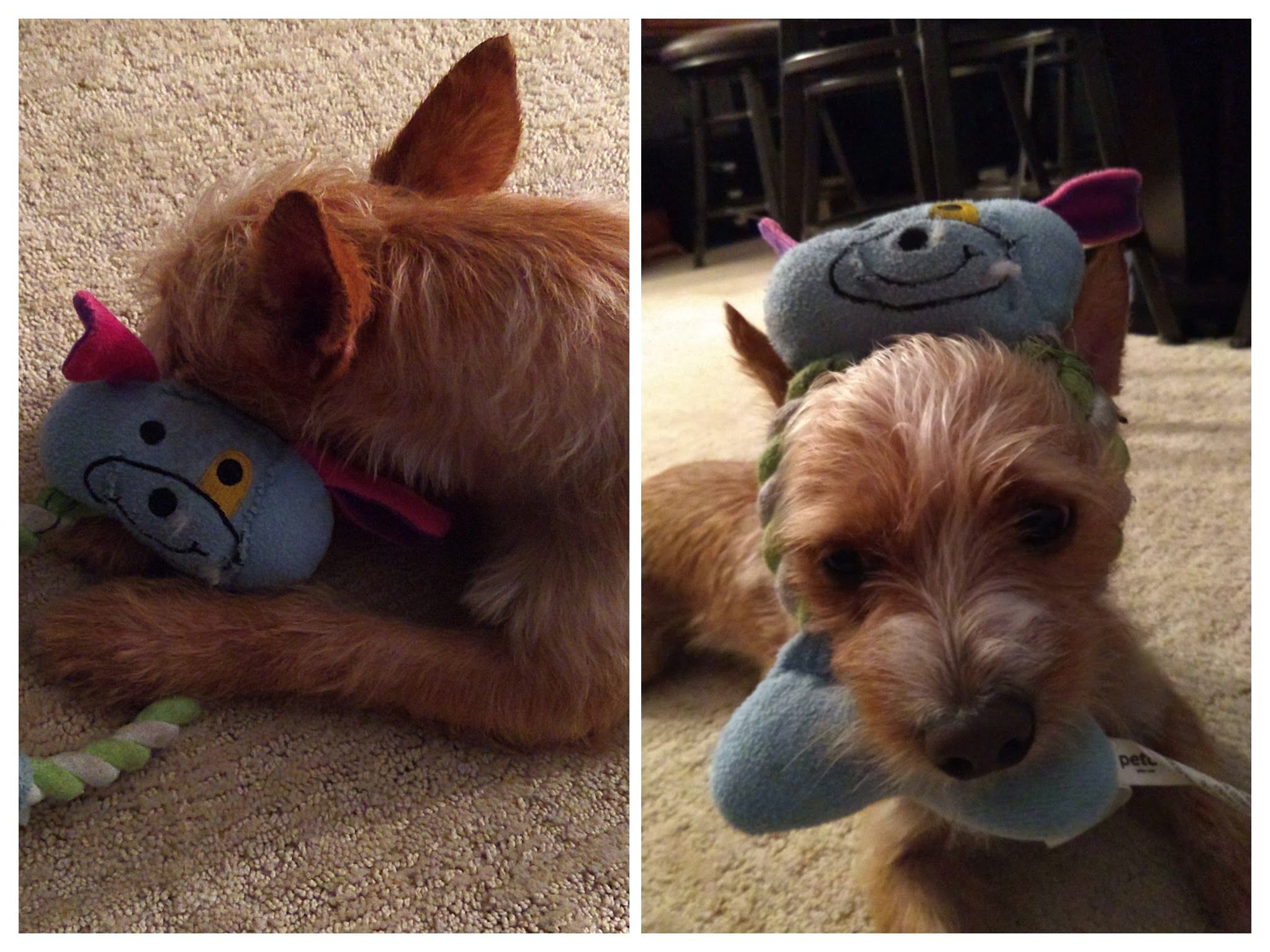 新しいおもちゃも好きみたいだけど、どちらか一つとなると最初のオモチャを選ぶのよね。
