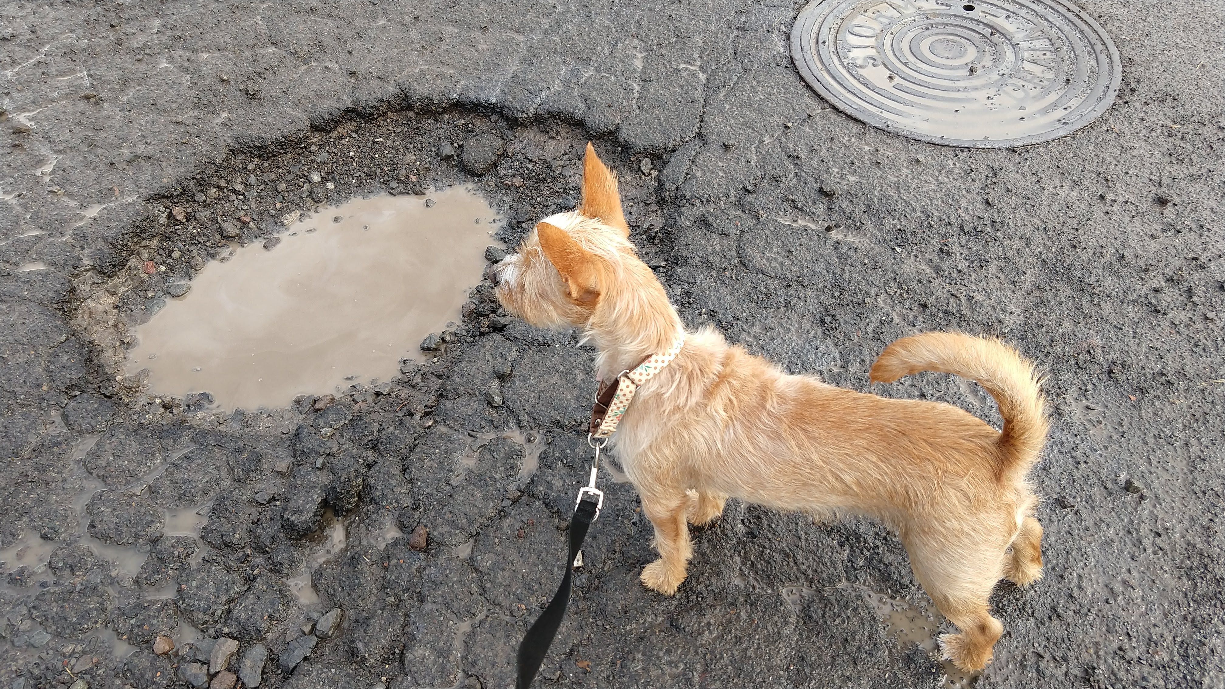 この穴は周辺もひび割れしているし、更に大きな穴になりそう。