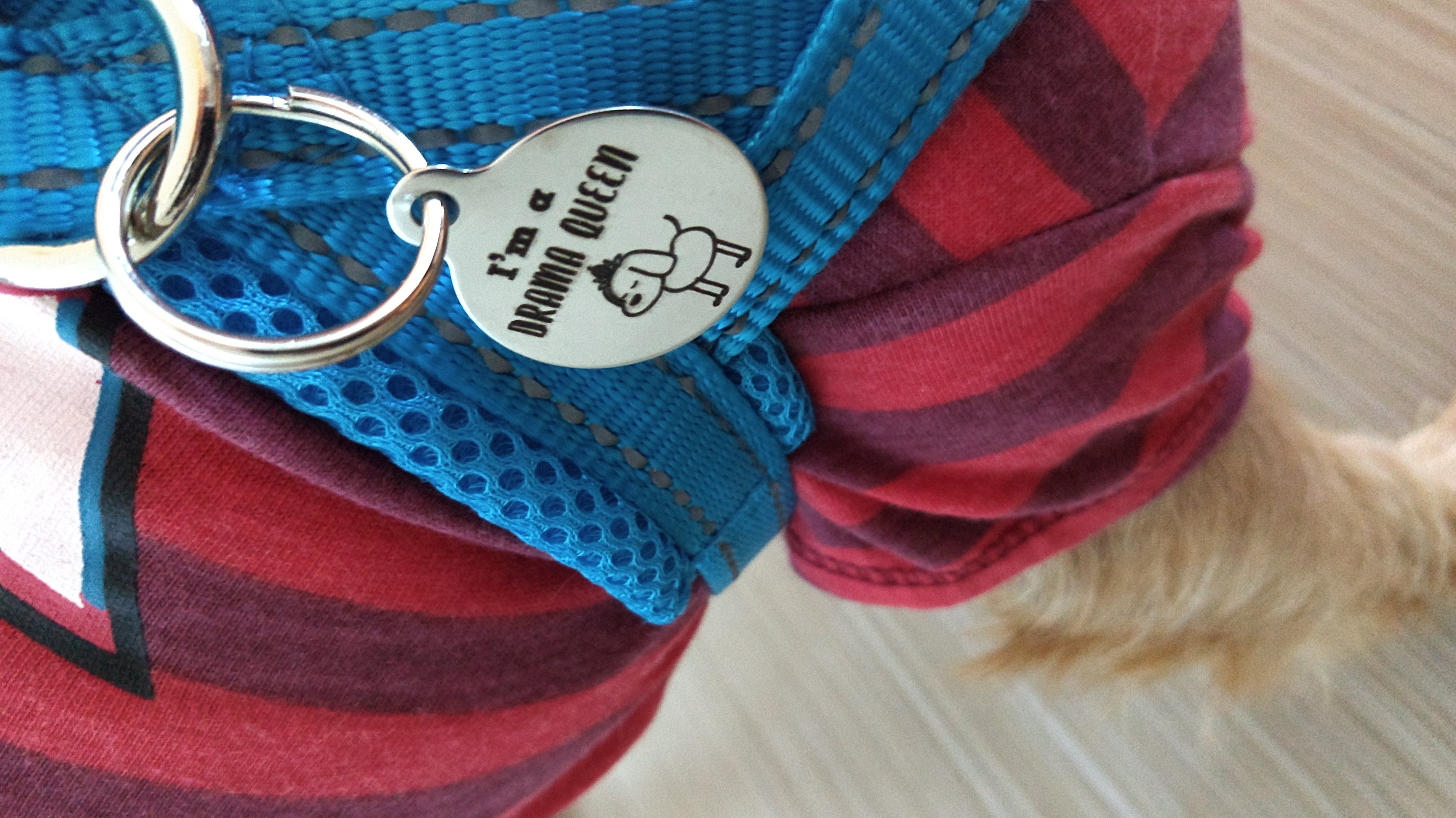 万が一、キアヌが迷子になった時、救助者がキアヌの大袈裟なリアクションに驚かないようにとこのタグを選んだのよ。
