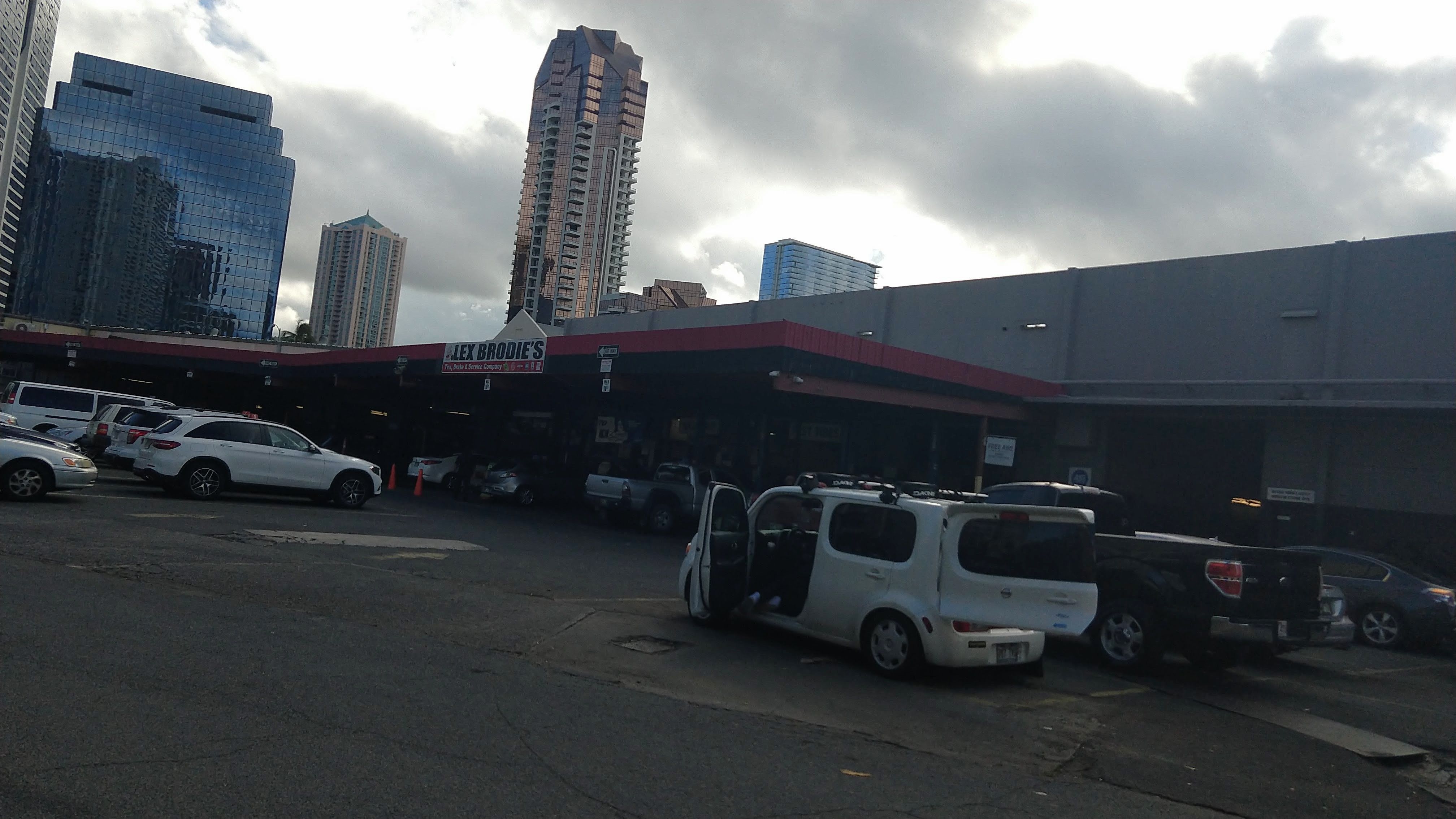 ハワイ大学のロゴ入り帽子や服を着ていくと5%オフ。$3.50引き。(車検費$20は割引対象外)
