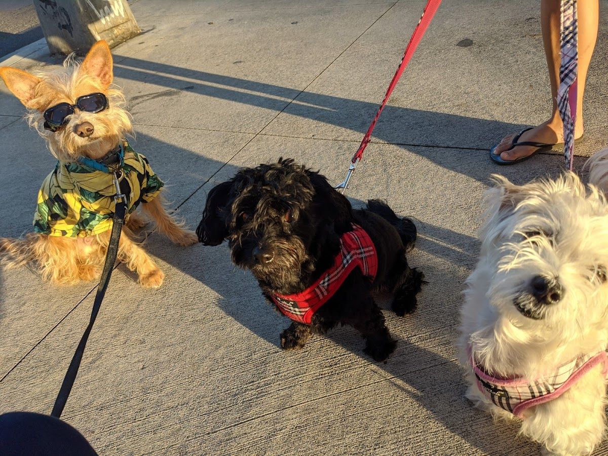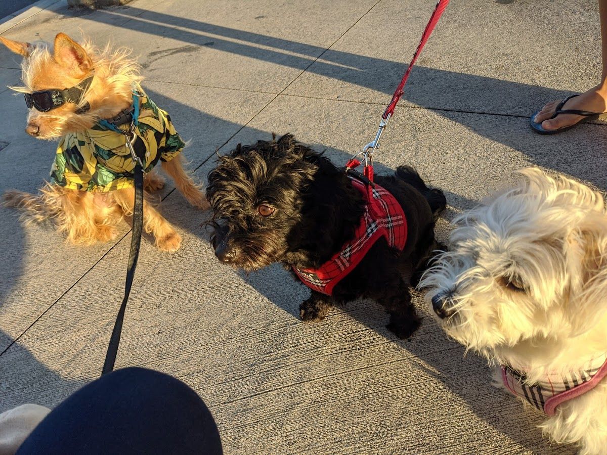 こうして三頭一緒にいると「仲間意識」が強くなって、見知らぬワンちゃん達が通り過ぎる度に吠えるのよね。お初のワンちゃんが歯を剥き出して、先に吠える場合も多い。