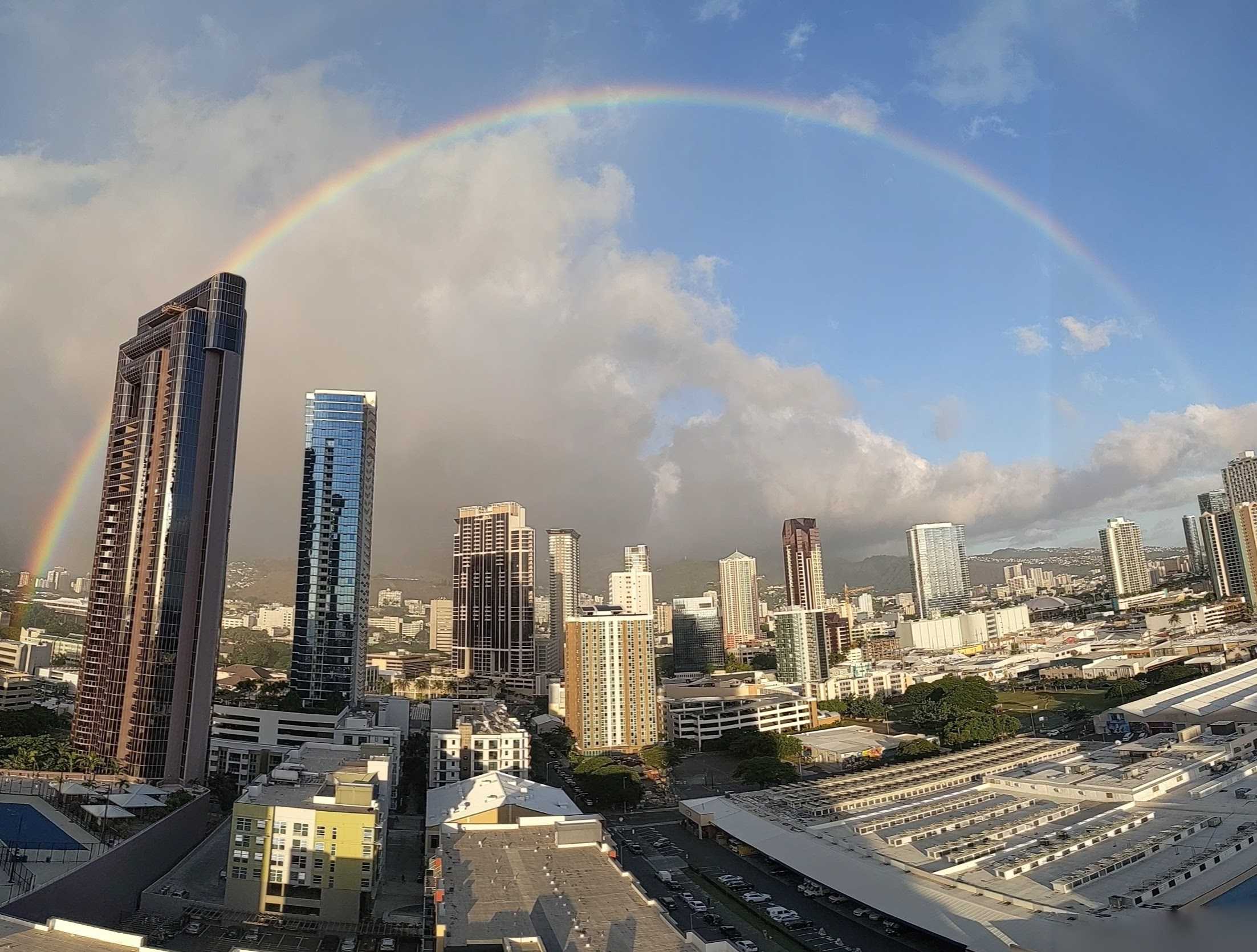 最近、太陽の位置がずれてきていて、虹が現れる場所が変わってきているわ。