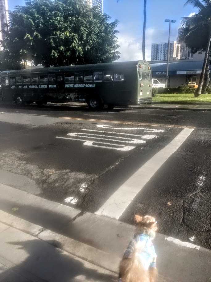 クアロア牧場ツアーバスがSalt前に停まっているを初めて見たわ。