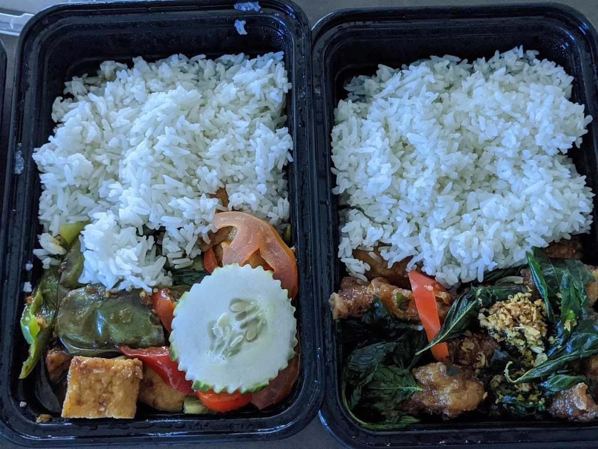タイ米(ジャスミンライス)が大量で、おかずは少なめ。