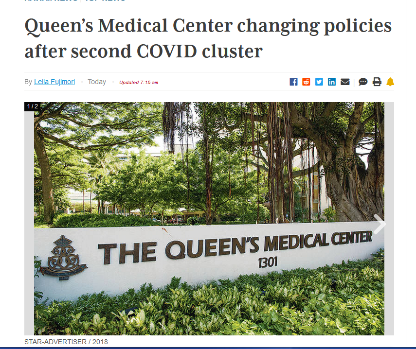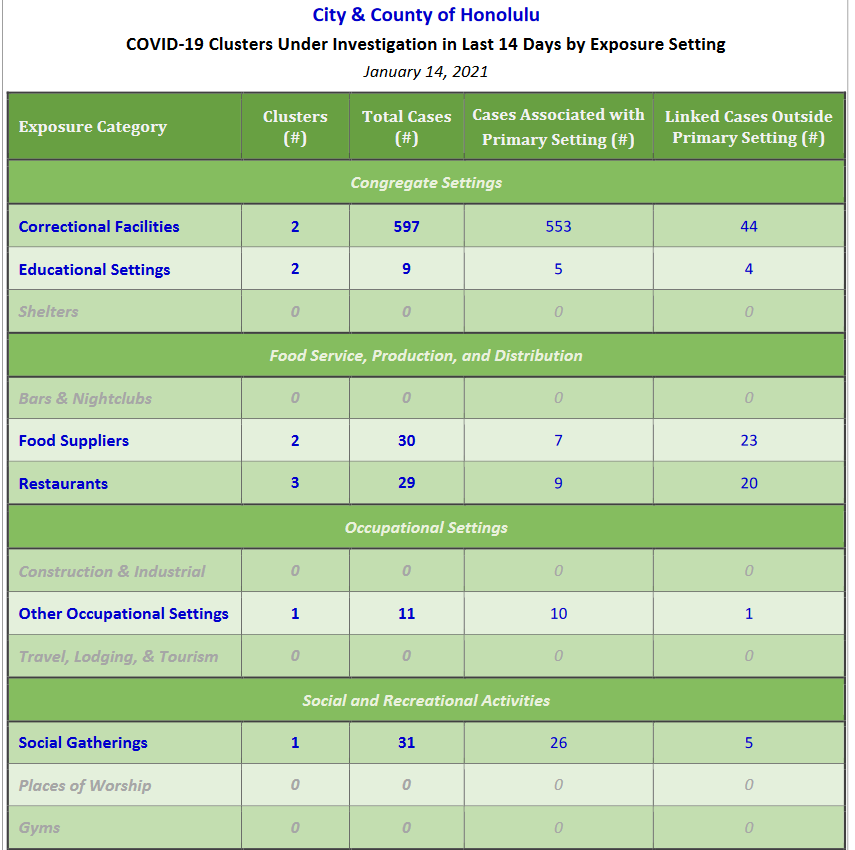 この二週間のホノルル郡(オアフ島)で調査中新型コロナクラスター